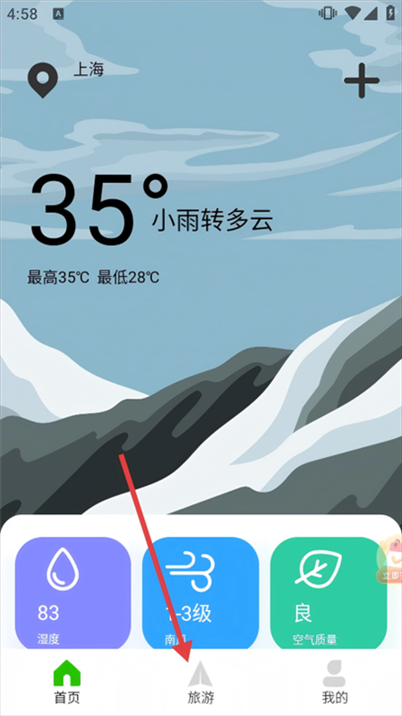 1、在APP首页,点击底部【旅游】,进入旅游页面。