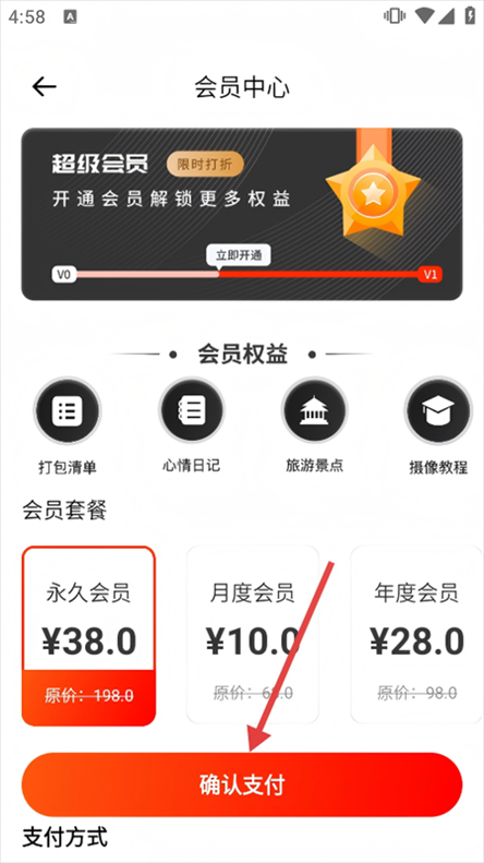 4、在会员中心页面,选择会员套餐,点击【确认支付】,完成会员购买流程以解锁攻略内容。