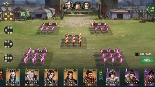 4、部队、将领、阵型、兵力与士气等要素均可自由搭配。