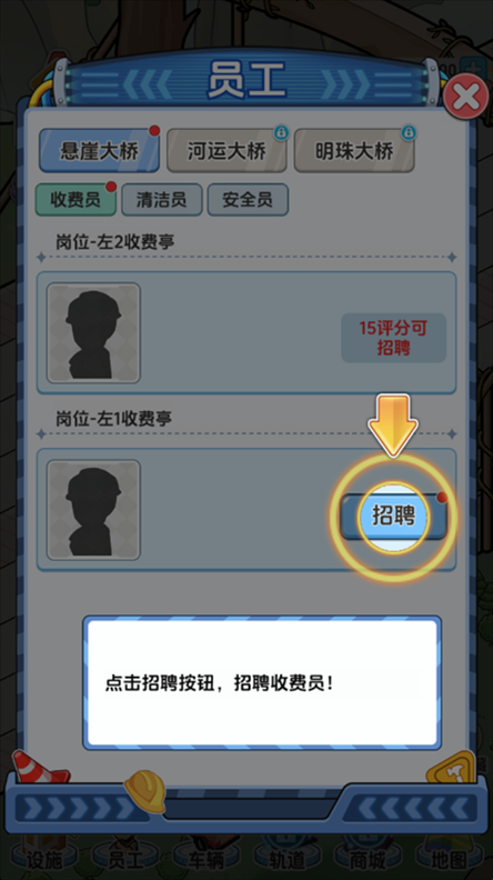 2、一是先雇佣员工,不用问为什么没有ETC,这是游戏设定。
